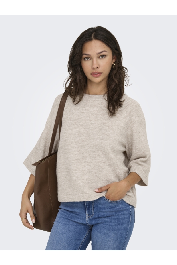 Maak kennis met de stijlvolle ONLSIMONI 3/4 pullover van ONLY, perfect voor dames die houden van een modieuze en comfortabele look. Deze beige trui is een veelzijdige toevoeging aan je garderobe.