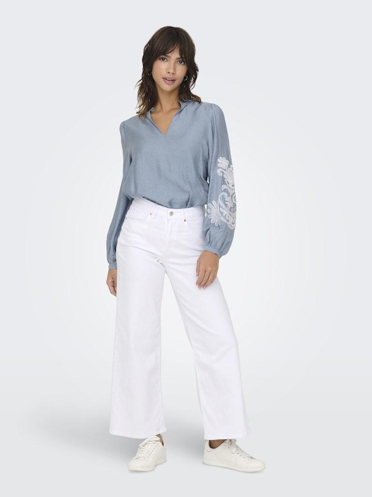 Verken de stijlvolle en veelzijdige ONLNEW MALOU L/S EMB TOP van ONLY. Deze prachtige top in een zachte blauwe tint, genaamd Faded Denim, is perfect voor de Nederlandse zomerdagen. Of je nu een wandeling maakt langs de grachten van Amsterdam of geniet van een terrasje in Utrecht, deze top maakt jouw outfit compleet.