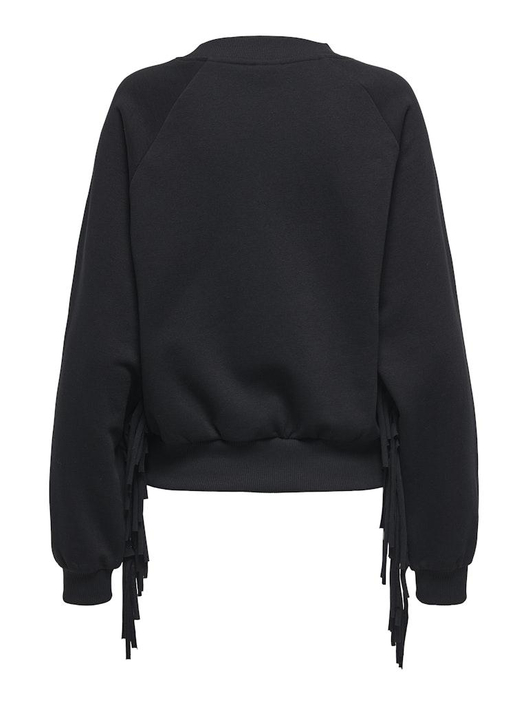 Maak kennis met de ONLY ONLJETT sweater, een stijlvolle toevoeging aan je wintergarderobe. Deze zwarte sweater met subtiele franjes is perfect voor een wandeling langs de grachten of een gezellige avond met vrienden.