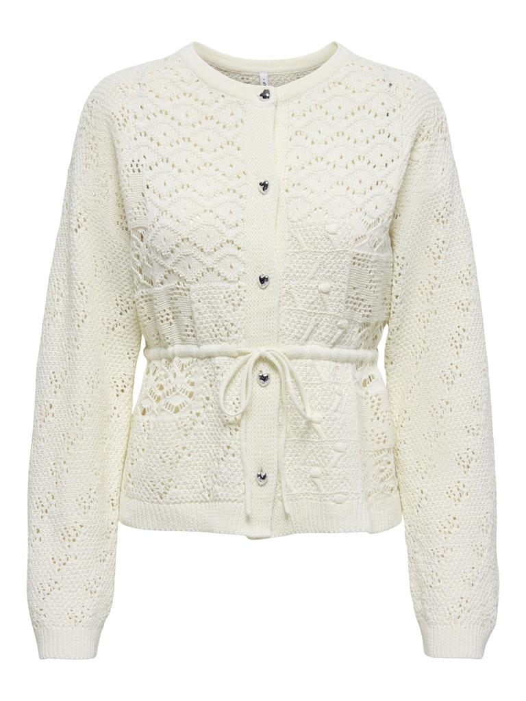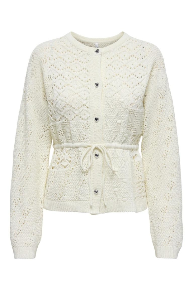 Ontdek de ONLELKE LIFE LS CARDIGAN van ONLY, een stijlvolle toevoeging aan je zomergarderobe. Dit ecru vest met zilveren hartknopen straalt elegantie uit en is perfect voor de Nederlandse zomerdagen.