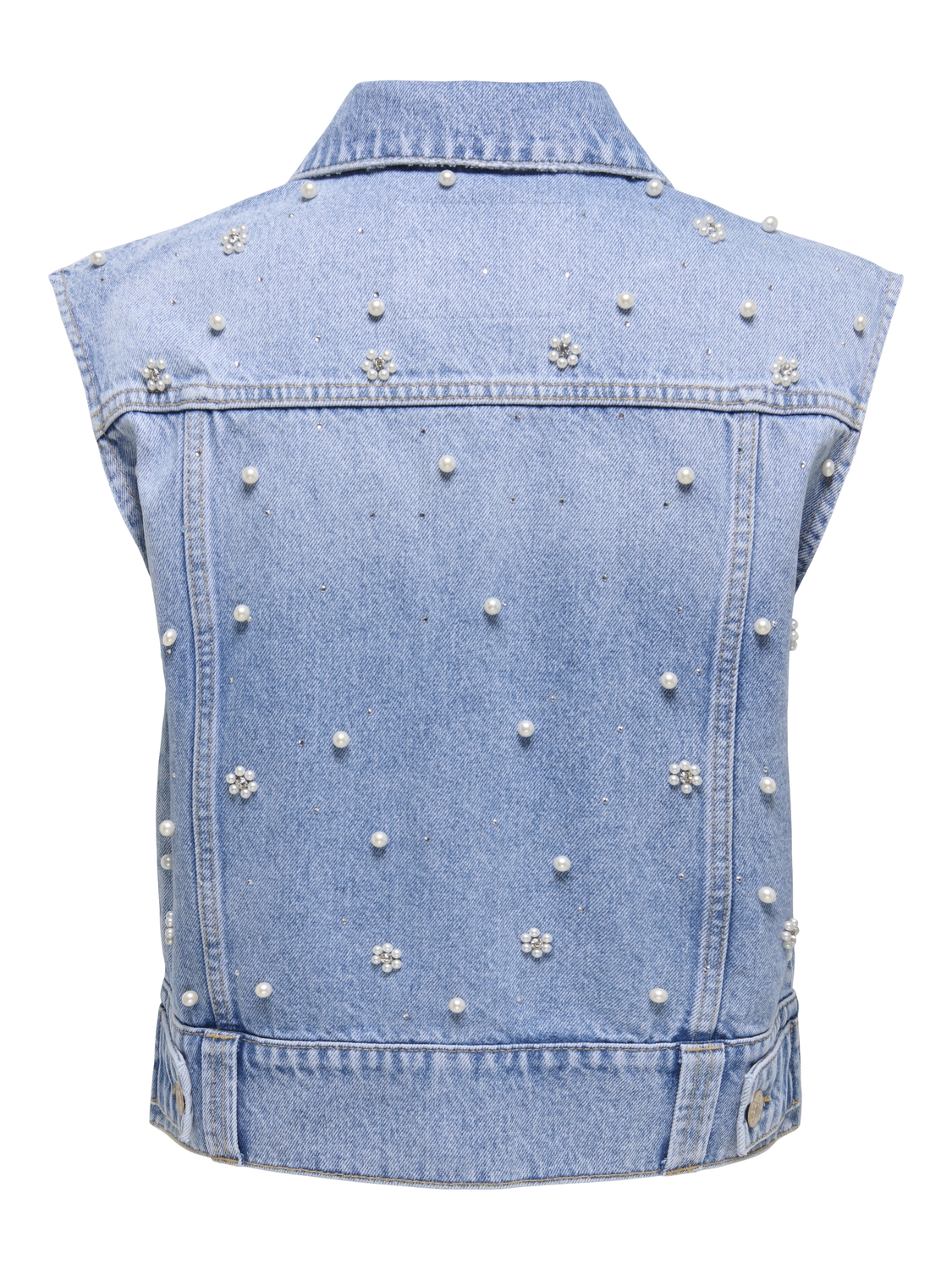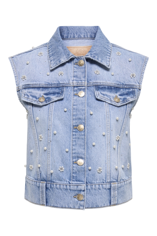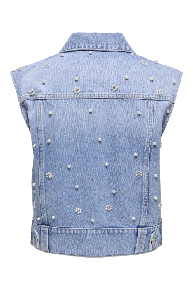 Maak kennis met het ONLY ONLONUR Pearl Deco Denim Vest in een prachtige lichtblauwe tint. Dit vest is de perfecte aanvulling voor jouw zomergarderobe en voegt een vleugje elegantie toe aan elke outfit.