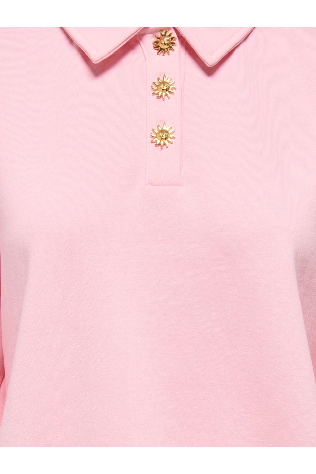 Maak kennis met de ONLAGNES sweater van ONLY in de prachtige kleur Romance Rose. Deze stijlvolle damestrui is perfect voor de zomerse dagen in Nederland. Met zijn lichte gouden knopen voegt hij een vleugje elegantie toe aan je dagelijkse look.