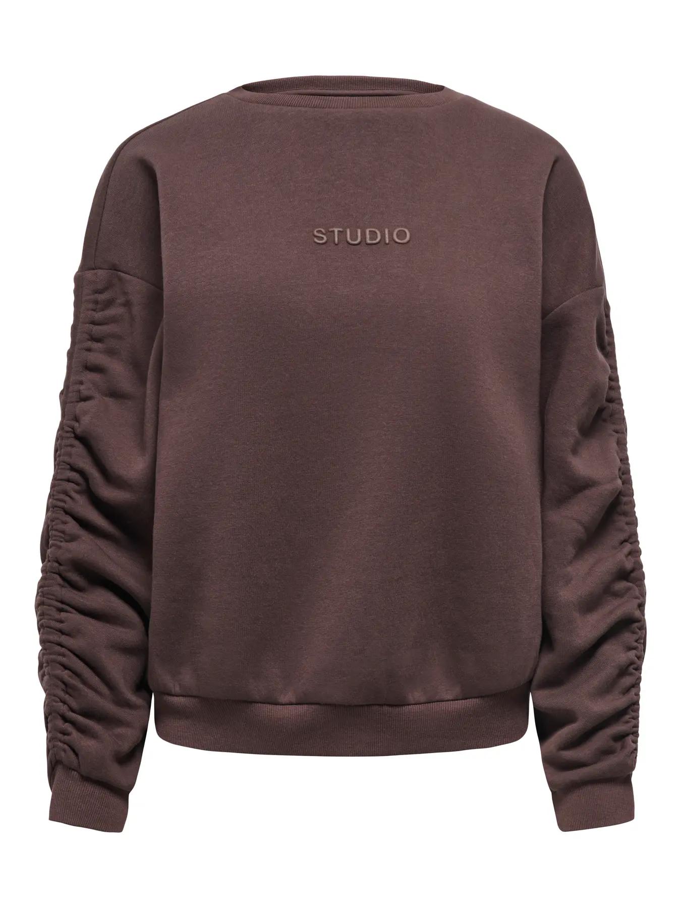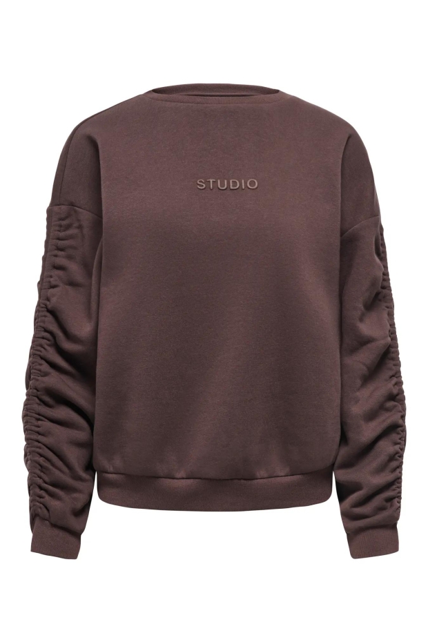 Ontdek de stijlvolle Coffee Bean Brown sweater van ONLY, perfect voor de modebewuste vrouw. Deze bruine sweater met een subtiele STUDIO print is ideaal voor zomerse dagen in Nederland.