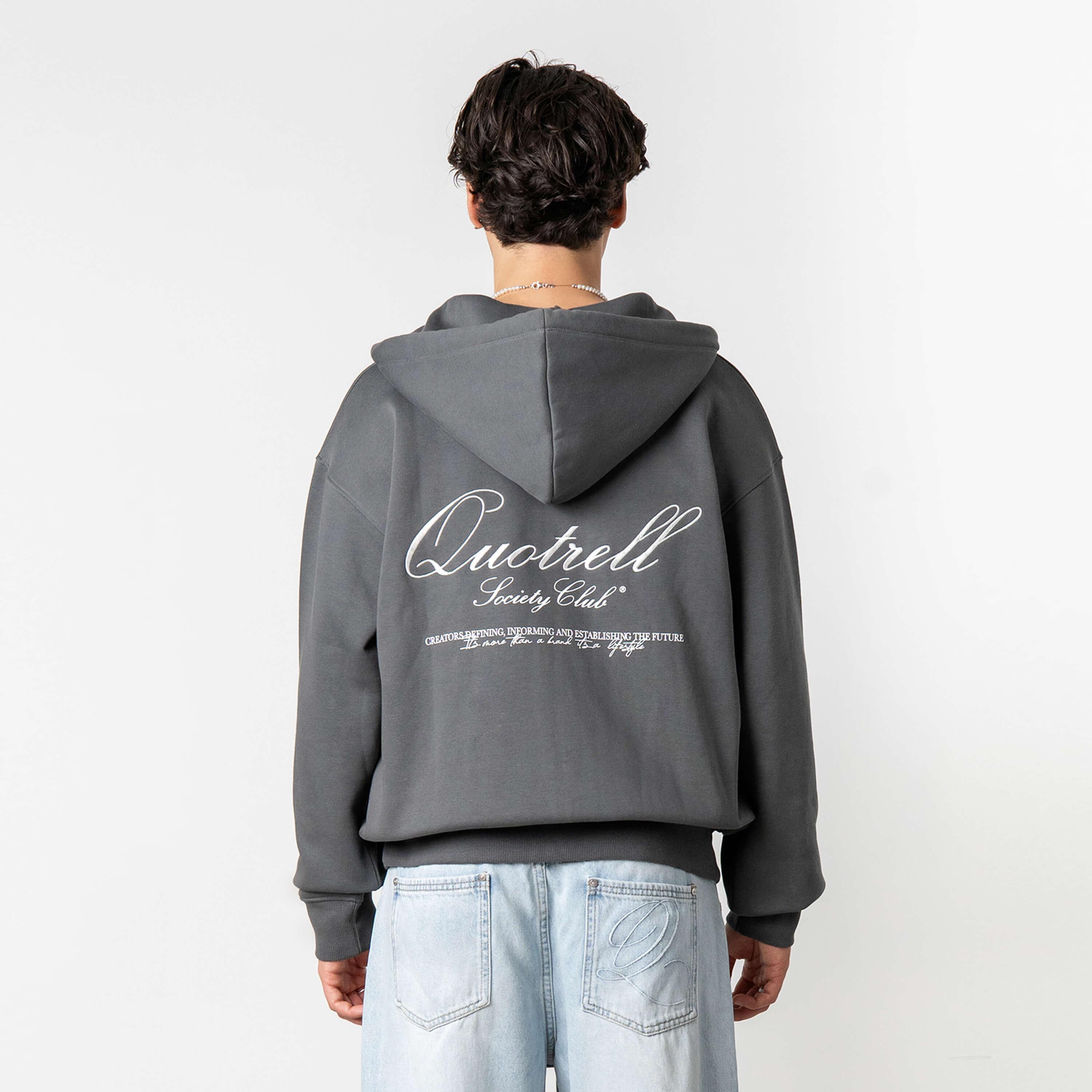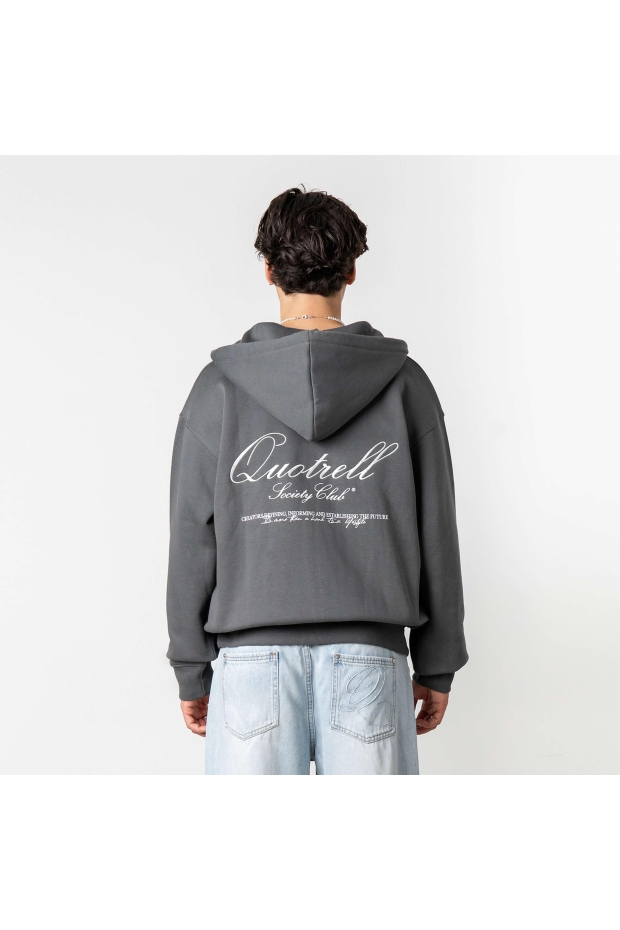 Ontdek de QUOTRELL Creators Zip Hoodie, perfect voor de modebewuste man die comfort en stijl wil combineren tijdens de koude Nederlandse winterdagen. Deze antracietkleurige hoodie is ideaal voor een casual dagje in de stad of een ontspannen weekend thuis.