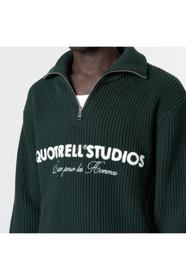 Maak kennis met de Jace Studio Zip Up trui van Quotrell, een stijlvolle en comfortabele keuze voor de modebewuste man. Deze groene trui is perfect voor de Nederlandse winter en biedt een moderne uitstraling met zijn unieke petrol en witte accenten.