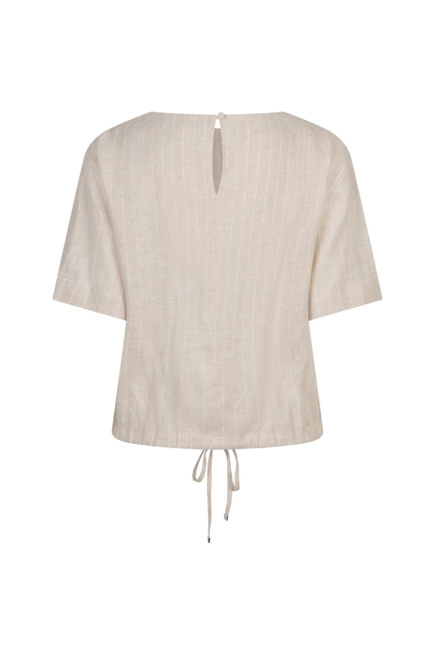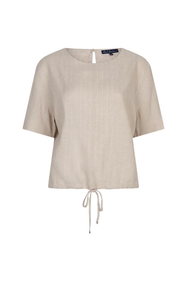 Maak kennis met de Skyler Linen/Visc Pinstripe T-shirt van RED BUTTON, een must-have voor de modebewuste vrouw deze zomer. Dit licht beige T-shirt met korte mouwen is perfect voor een casual en stijlvolle look.