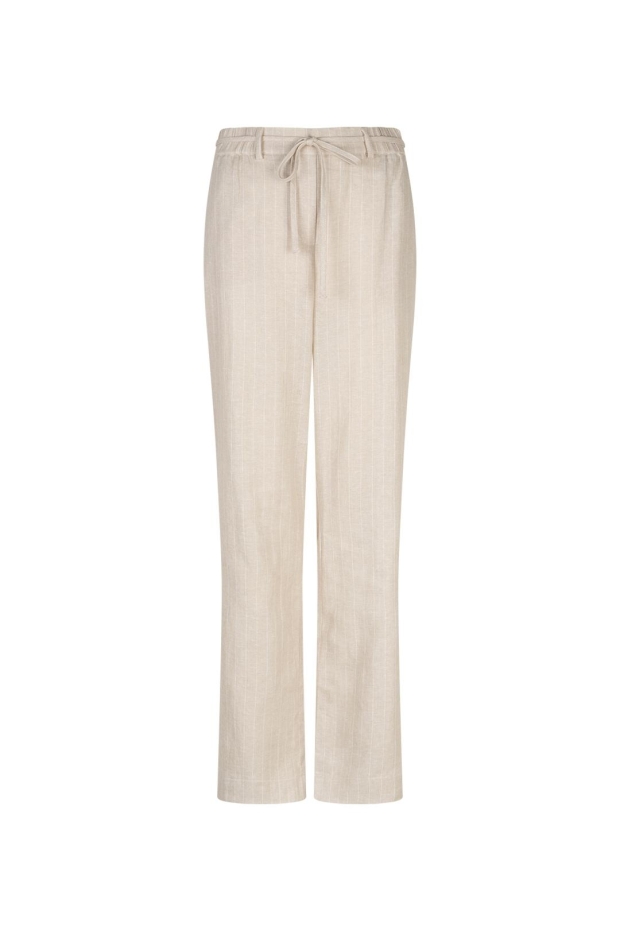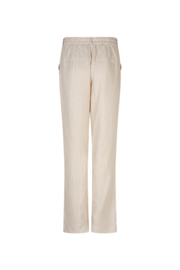 Maak kennis met de Claudette broek van RED BUTTON in een stijlvolle licht beige tint. Deze damesbroek is perfect voor de zomerse dagen in Nederland, met zijn luchtige linnen en viscose pinstripe stof. Ideaal voor een casual dagje uit in de stad of een ontspannen middag in het park.