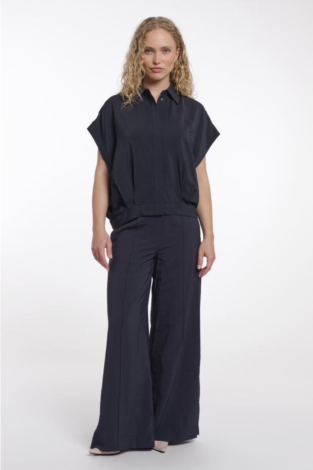 Rino & Pelle Boxy capsleeve top with pleats in waist Imela.7002 10175 dark navy