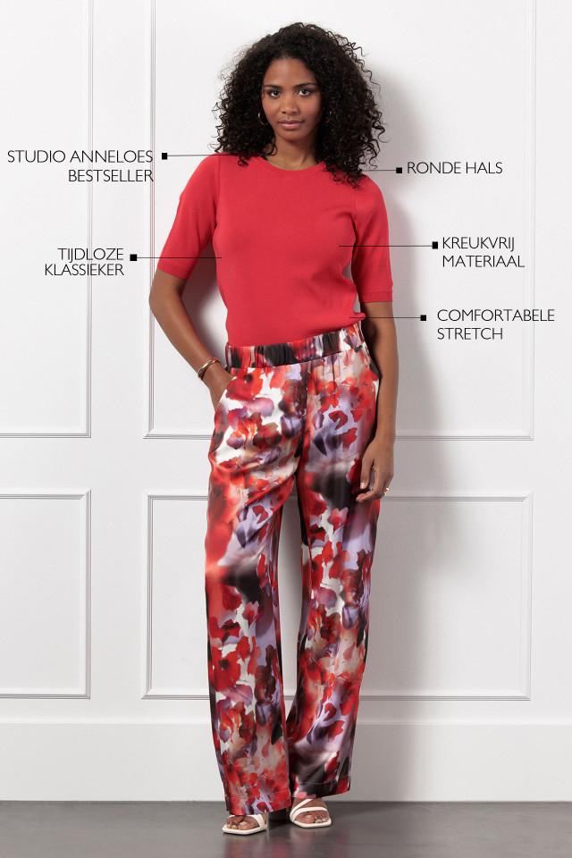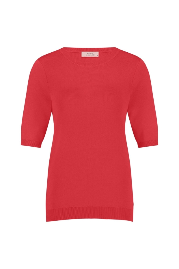 Maak kennis met de stijlvolle Lana ssl pullover van STUDIO ANNELOES, een must-have voor elke modebewuste vrouw. Deze elegante trui met korte mouwen in de krachtige kleur Coral Red is perfect voor de zomer. Het biedt niet alleen een warme en comfortabele pasvorm, maar voegt ook een vleugje verfijning toe aan elke outfit.