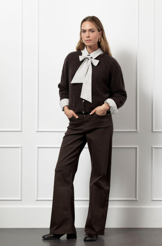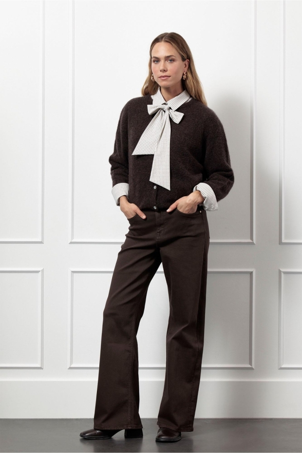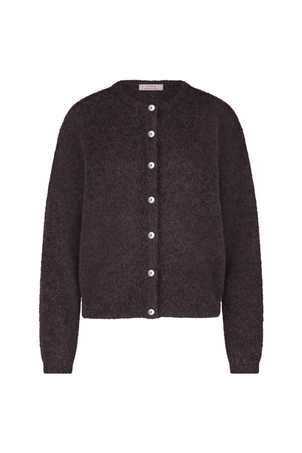 Maak kennis met de Bibi mohair cardigan van Studio Anneloes, een must-have voor elke modebewuste vrouw. Dit donkerbruine vest, ook wel 'espresso' genoemd, is perfect voor de koude wintermaanden. Het biedt niet alleen warmte, maar ook een stijlvolle uitstraling die je outfit compleet maakt. Ideaal voor een frisse ochtendwandeling langs de grachten of een gezellige avond bij de open haard.