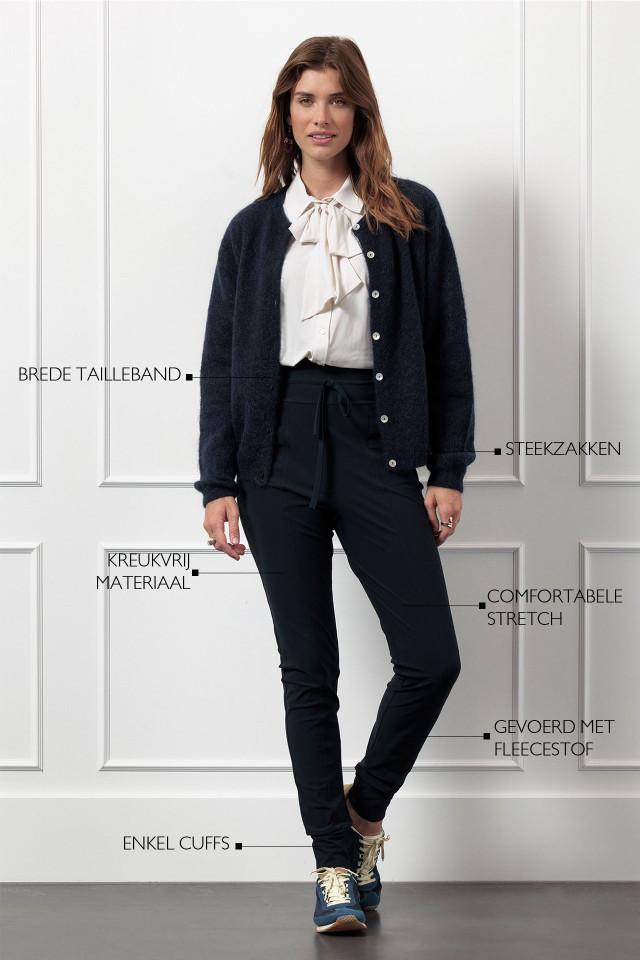 - Donkerblauwe kleur die makkelijk te combineren is met andere kledingstukken