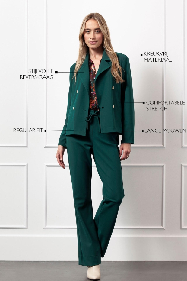 Maak kennis met de Jade bonded blazer van STUDIO ANNELOES, een stijlvolle toevoeging aan je wintergarderobe. Deze groene blazer is perfect voor een dagje in de stad of een zakelijke bijeenkomst. De tijdloze kleur en het elegante ontwerp maken het een must-have voor elke modebewuste vrouw.