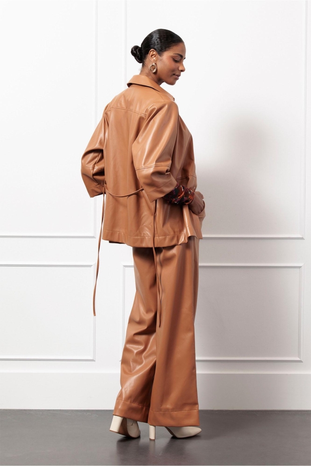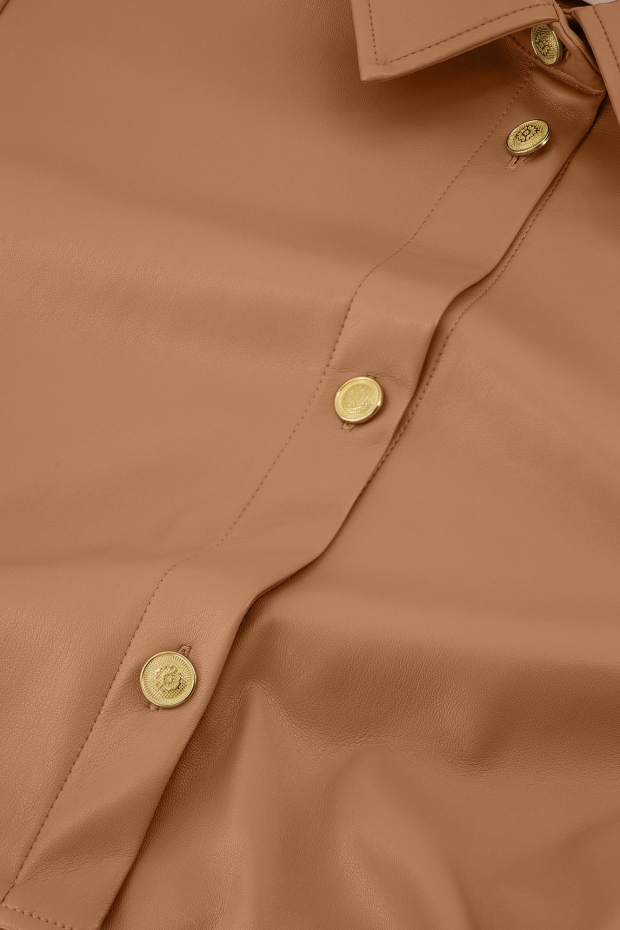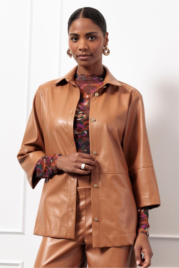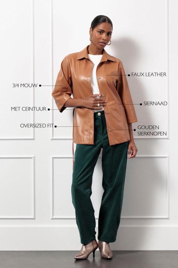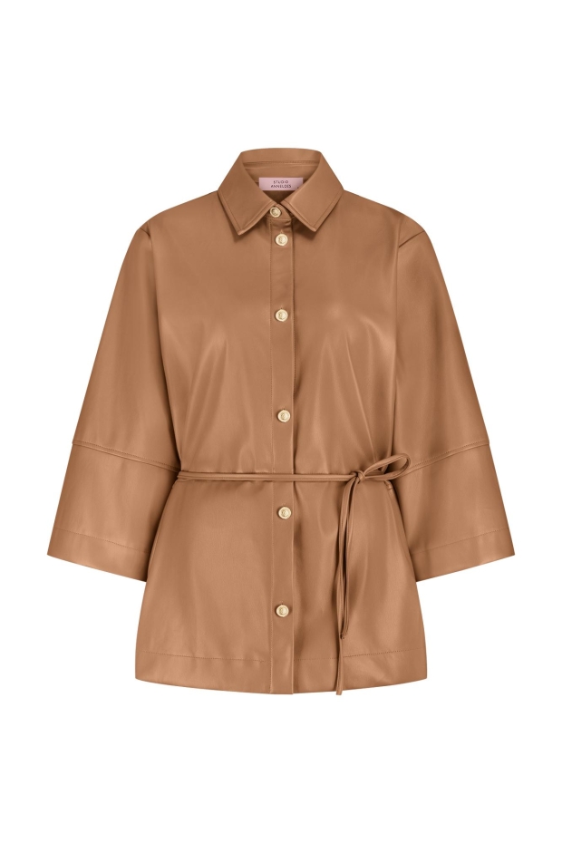 Maak kennis met de stijlvolle Lenny faux leather blouse van Studio Anneloes. Deze damesblouse in een warme cognac kleur is een perfecte aanvulling op je wintergarderobe. De blouse straalt elegantie uit en is ideaal voor zowel casual als formele gelegenheden.