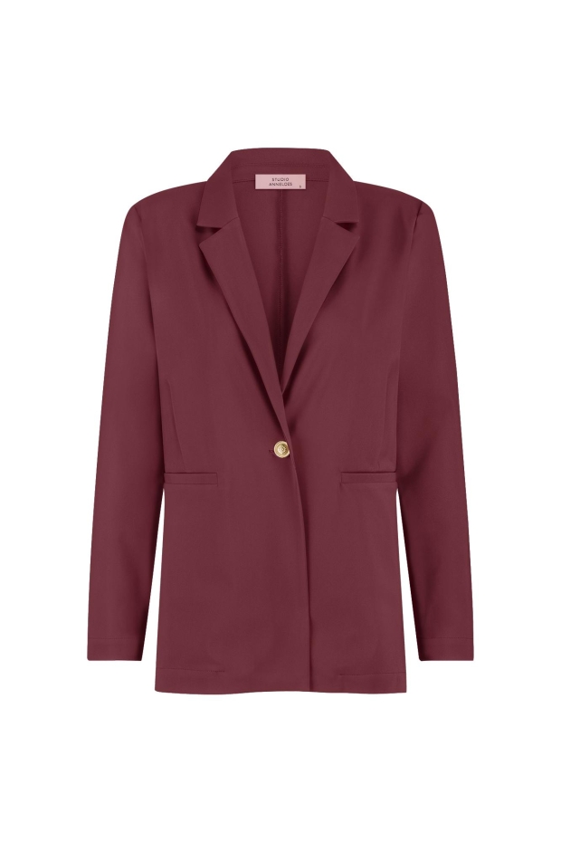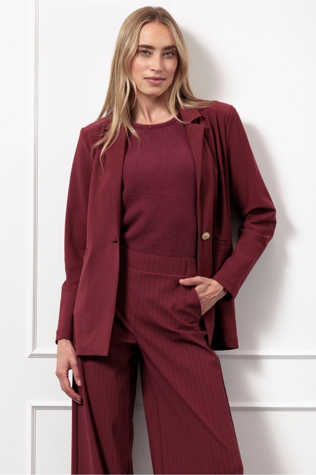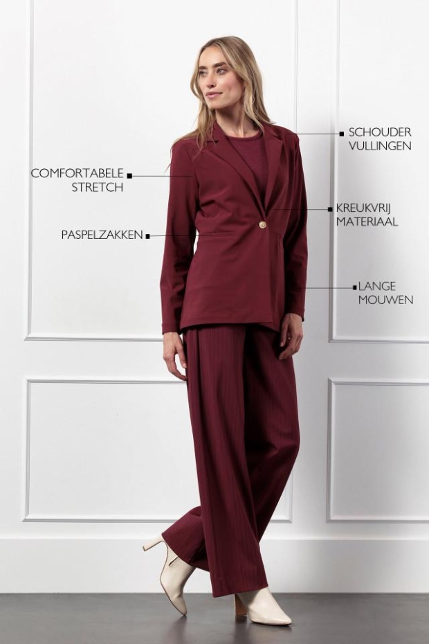 Maak kennis met de Arwen bonded blazer van STUDIO ANNELOES, een stijlvolle toevoeging aan je wintergarderobe. Deze bordeauxrode blazer is perfect voor een dagje in de stad of een avondje uit. De Arwen blazer combineert elegantie met comfort, waardoor je er altijd op je best uitziet.