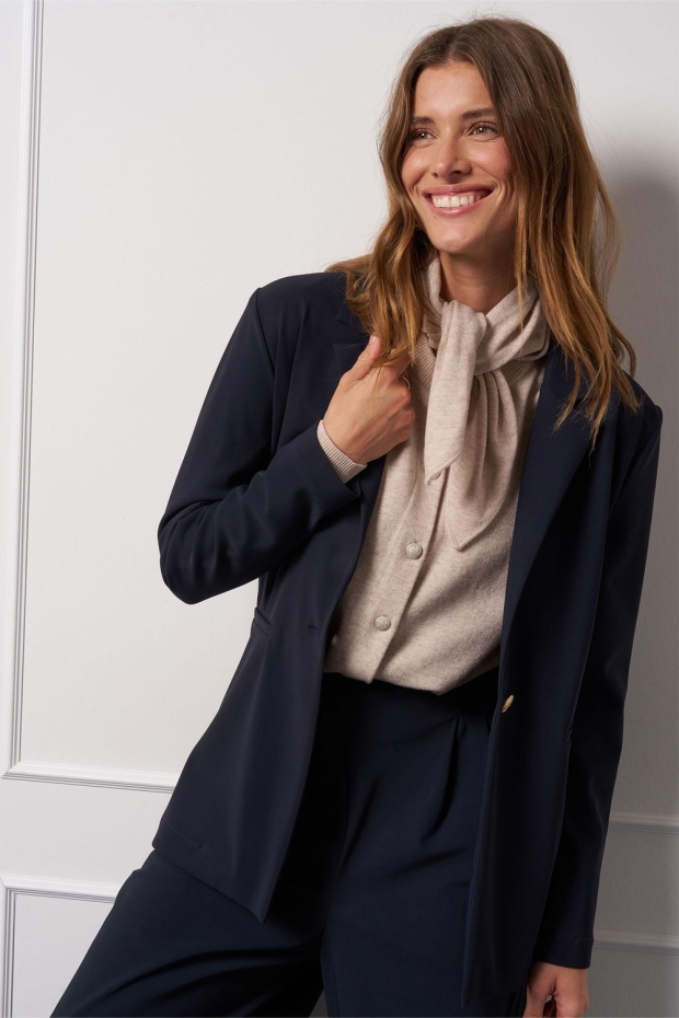 Maak kennis met de Arwen bonded blazer van STUDIO ANNELOES, een stijlvolle toevoeging aan je wintergarderobe. Deze donkerblauwe blazer is perfect voor een dagje in de stad of een zakelijke bijeenkomst. De Arwen blazer combineert comfort met een modieuze uitstraling, waardoor je altijd goed voor de dag komt.
