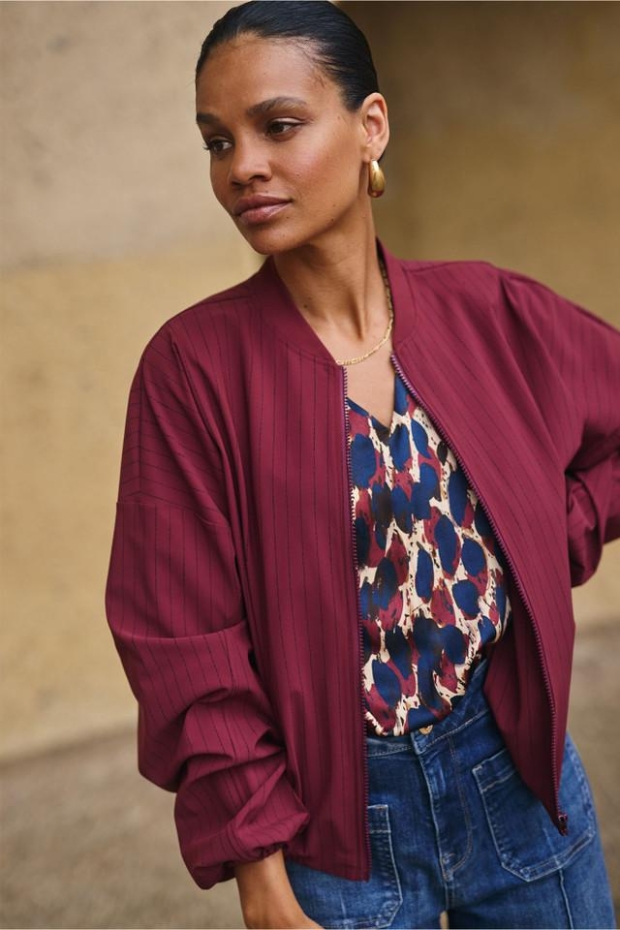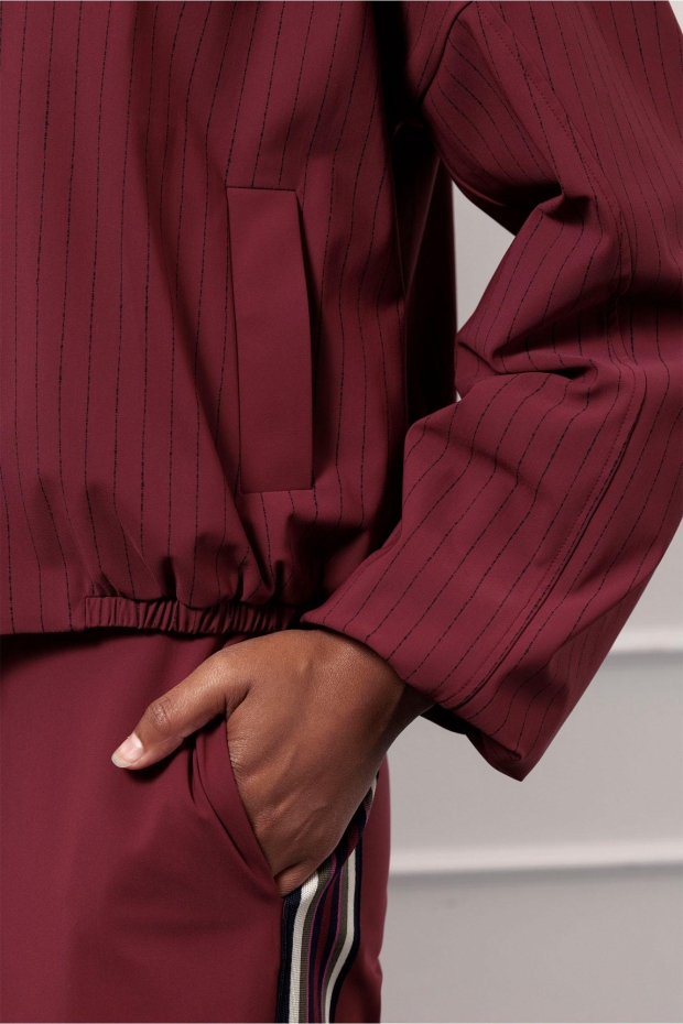 Maak kennis met de Storm stripe bomber jacket van STUDIO ANNELOES, een stijlvolle keuze voor de modebewuste Nederlandse vrouw. Deze jas is perfect voor de wintermaanden en voegt een vleugje kleur toe aan je garderobe met zijn bordeaux en donkerblauwe strepen. Ideaal voor een dagje in de stad of een gezellige winterwandeling.