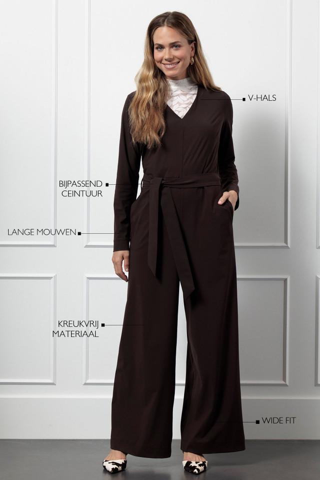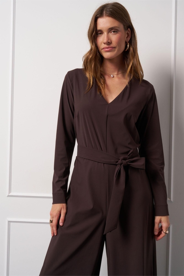Maak kennis met de Odessa jumpsuit van Studio Anneloes in een stijlvolle donkere bruine tint. Deze jumpsuit is perfect voor de modebewuste vrouw die op zoek is naar een veelzijdig en comfortabel kledingstuk voor de wintermaanden. Ideaal voor een dag op kantoor of een avondje uit in de stad.
