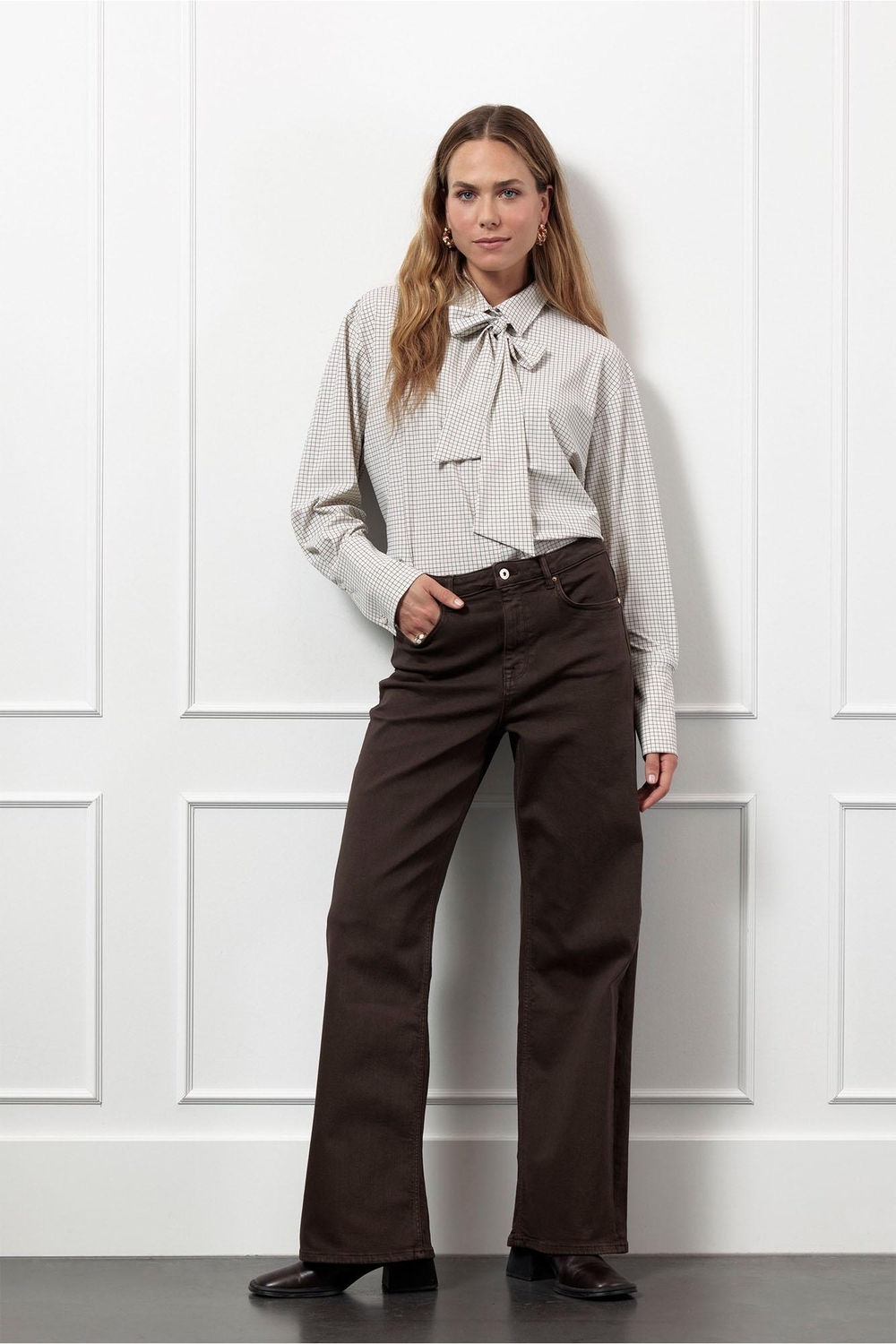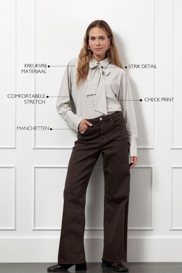 Verken de stijlvolle Hollis dot check blouse van Studio Anneloes. Deze damesblouse in een verfijnde kitkleur met espresso-accenten is perfect voor de modebewuste vrouw. Ideaal voor een winterse dag in Nederland, of je nu langs de grachten wandelt of een dag op kantoor doorbrengt. Combineer deze blouse met een donkere jeans of een elegante rok voor een complete look.