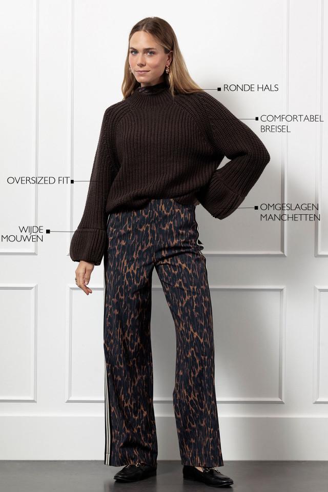 Maak kennis met de Colly chunky pullover van STUDIO ANNELOES, een must-have voor de Nederlandse winter. Deze donkerbruine trui, ook wel 'espresso' genoemd, is perfect voor een wandeling langs de grachten of een gezellige avond thuis.