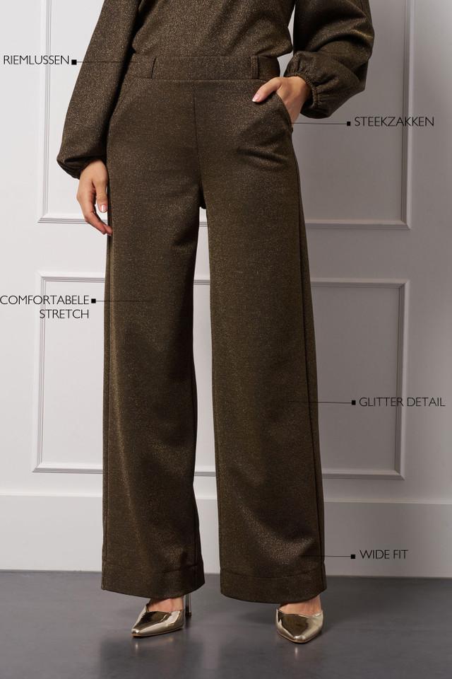 Verken de Lexie sparkle trousers van STUDIO ANNELOES, een gouden broek die jouw wintergarderobe een sprankelende upgrade geeft. Perfect voor een avondje uit in de stad of een feestelijke gelegenheid.