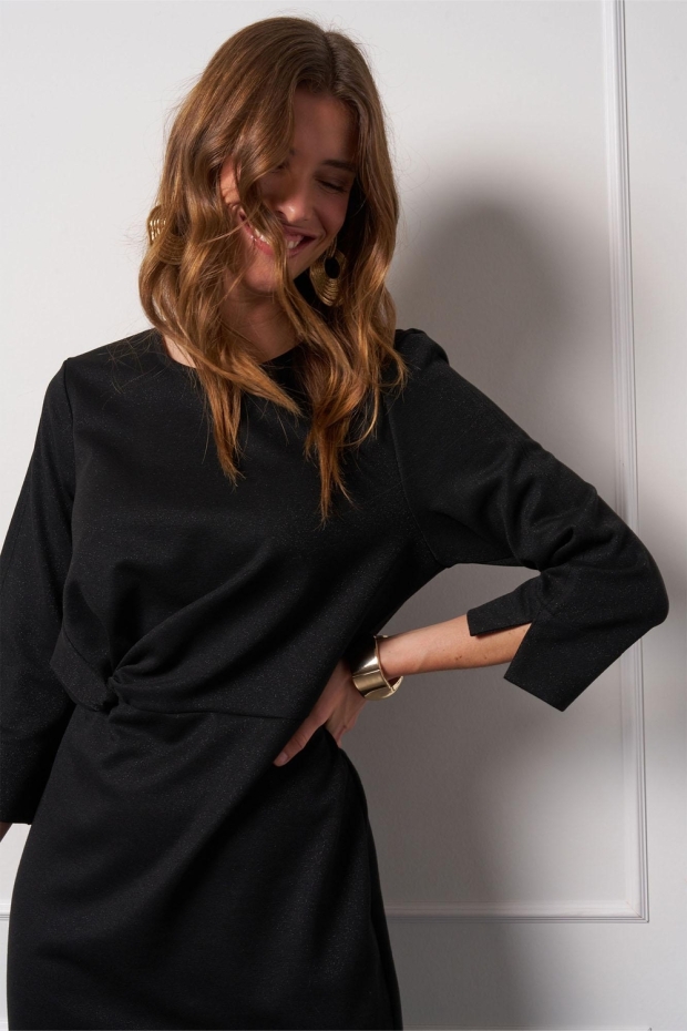 Maak kennis met de Valerie sparkle dress van STUDIO ANNELOES, een elegante zwarte jurk die perfect is voor de wintermaanden. Deze jurk straalt klasse uit en is ideaal voor een avondje uit in de stad of een chique diner.