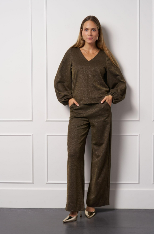 Verken de Claudina sparkle top van STUDIO ANNELOES, een elegante gouden top die perfect is voor de Nederlandse winter. Deze lange mouw T-shirt is ideaal voor een avondwandeling langs de grachten of een gezellig diner in de stad.