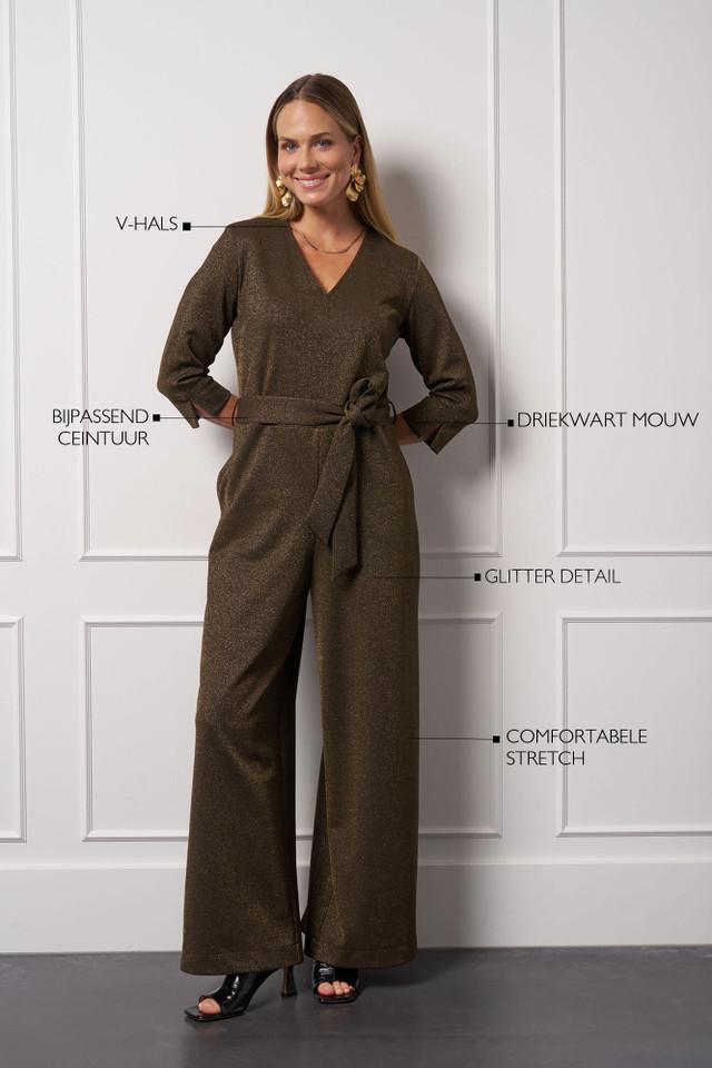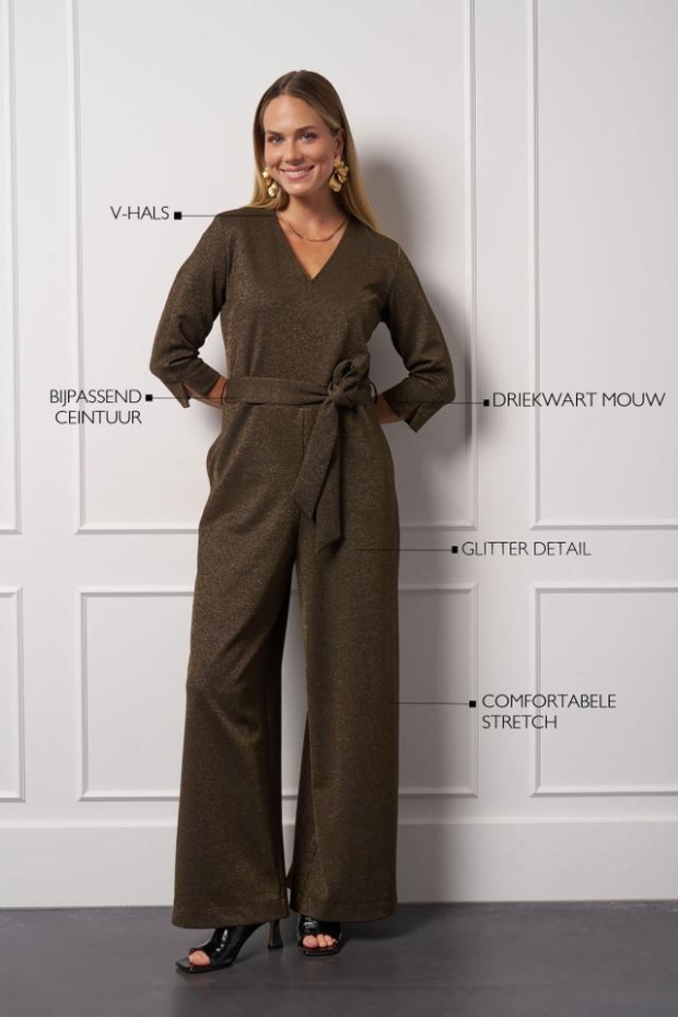 Verken de Odessi sparkle jumpsuit van STUDIO ANNELOES, een gouden parel die jouw wintergarderobe laat stralen. Perfect voor een avondje uit in de stad of een chique diner aan de Amsterdamse grachten.