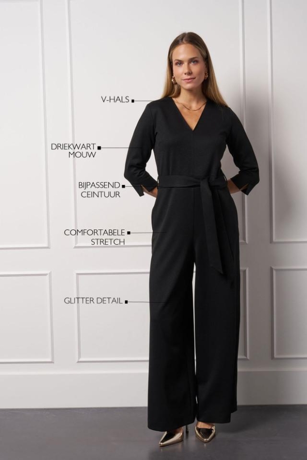 Maak kennis met de Odessi sparkle jumpsuit van STUDIO ANNELOES, een stijlvolle keuze voor de modebewuste vrouw. Deze zwarte jumpsuit is perfect voor de wintermaanden en voegt een vleugje glamour toe aan je garderobe.