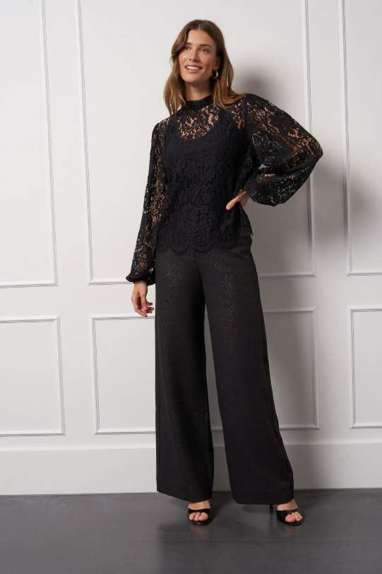 Maak kennis met de Veda lace top van STUDIO ANNELOES, een elegante toevoeging aan je wintergarderobe. Deze zwarte top met lange mouwen is perfect voor stijlvolle dames die houden van een verfijnde look. Ideaal voor een avondje uit in de stad of een chique diner.