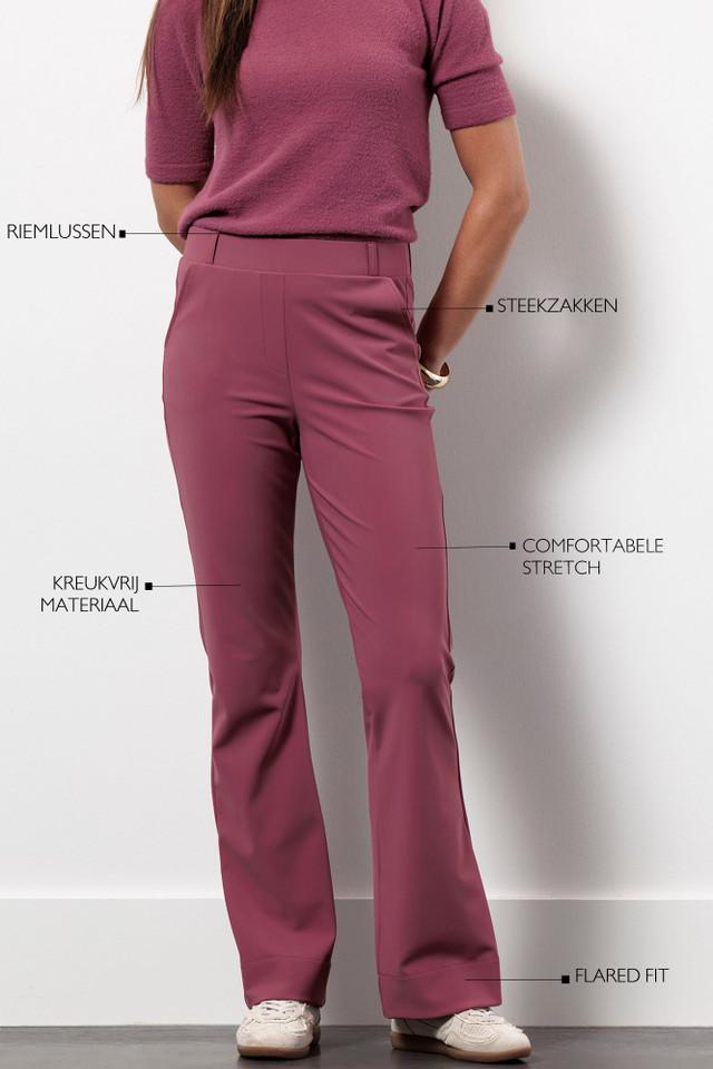 Maak kennis met de Flair bonded trousers van STUDIO ANNELOES in een prachtige lichtroze tint, perfect voor de stijlvolle Nederlandse winter. Deze flared broek combineert moeiteloos comfort met een modieuze flair, ideaal voor een wandeling langs de grachten of een gezellige avond uit.
