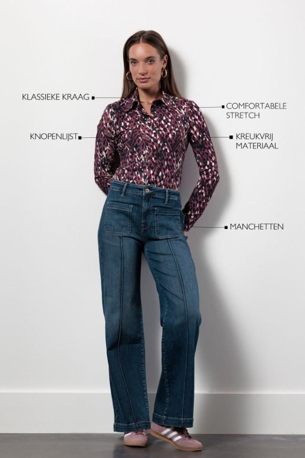 Maak kennis met de Poppy leopard blouse van STUDIO ANNELOES, een veelzijdige toevoeging aan je wintergarderobe. Deze blouse in een opvallende multi colour print is perfect voor een stijlvolle wandeling langs de grachten of een gezellige avond uit.