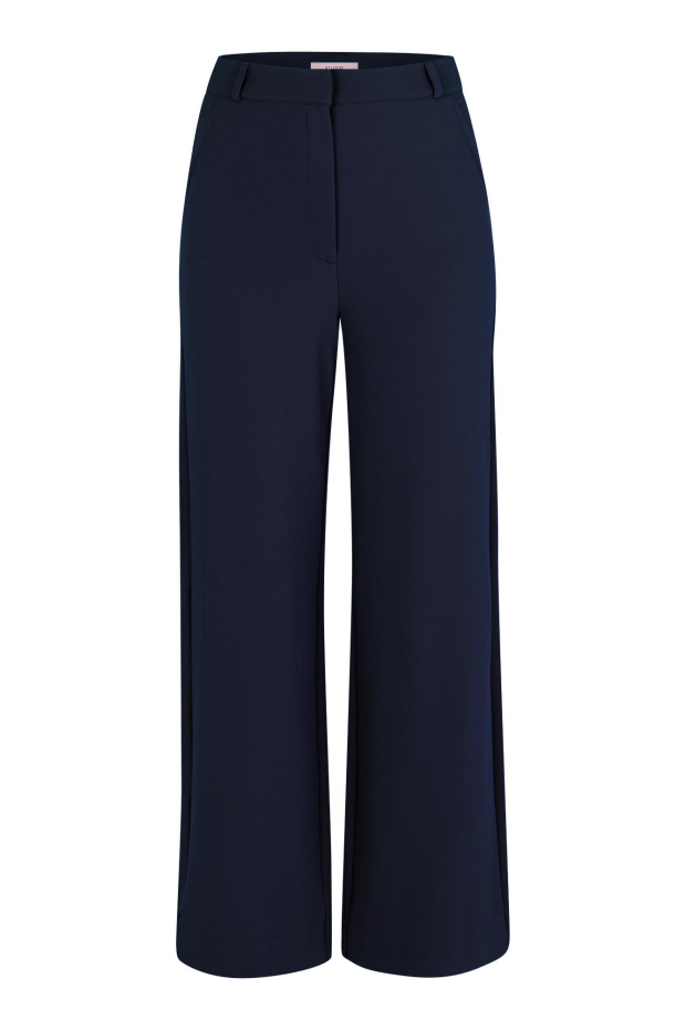 Maak kennis met de stijlvolle Luz twill trousers van STUDIO ANNELOES. Deze donkerblauwe damesbroek is een must-have voor de Nederlandse winter, perfect voor een wandeling langs de grachten of een dagje shoppen in de stad.