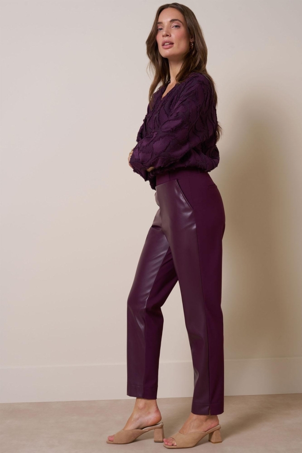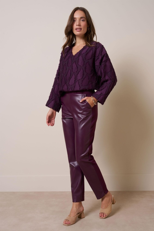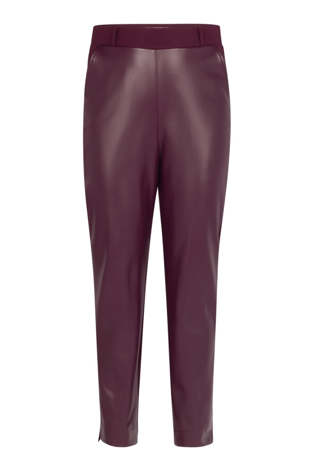 Verken de luxe en stijl van de STUDIO ANNELOES Anne faux leather trousers in een prachtige bordeaux tint. Deze broek is perfect voor de Nederlandse winter en voegt een vleugje elegantie toe aan je garderobe.