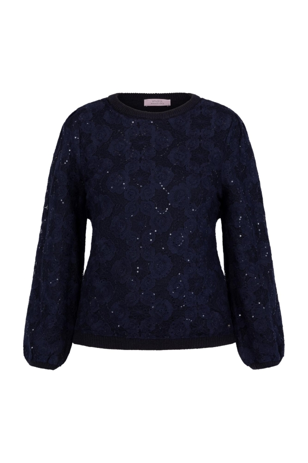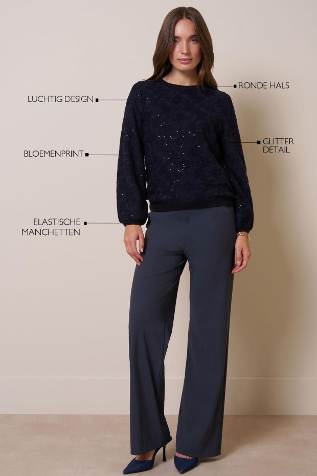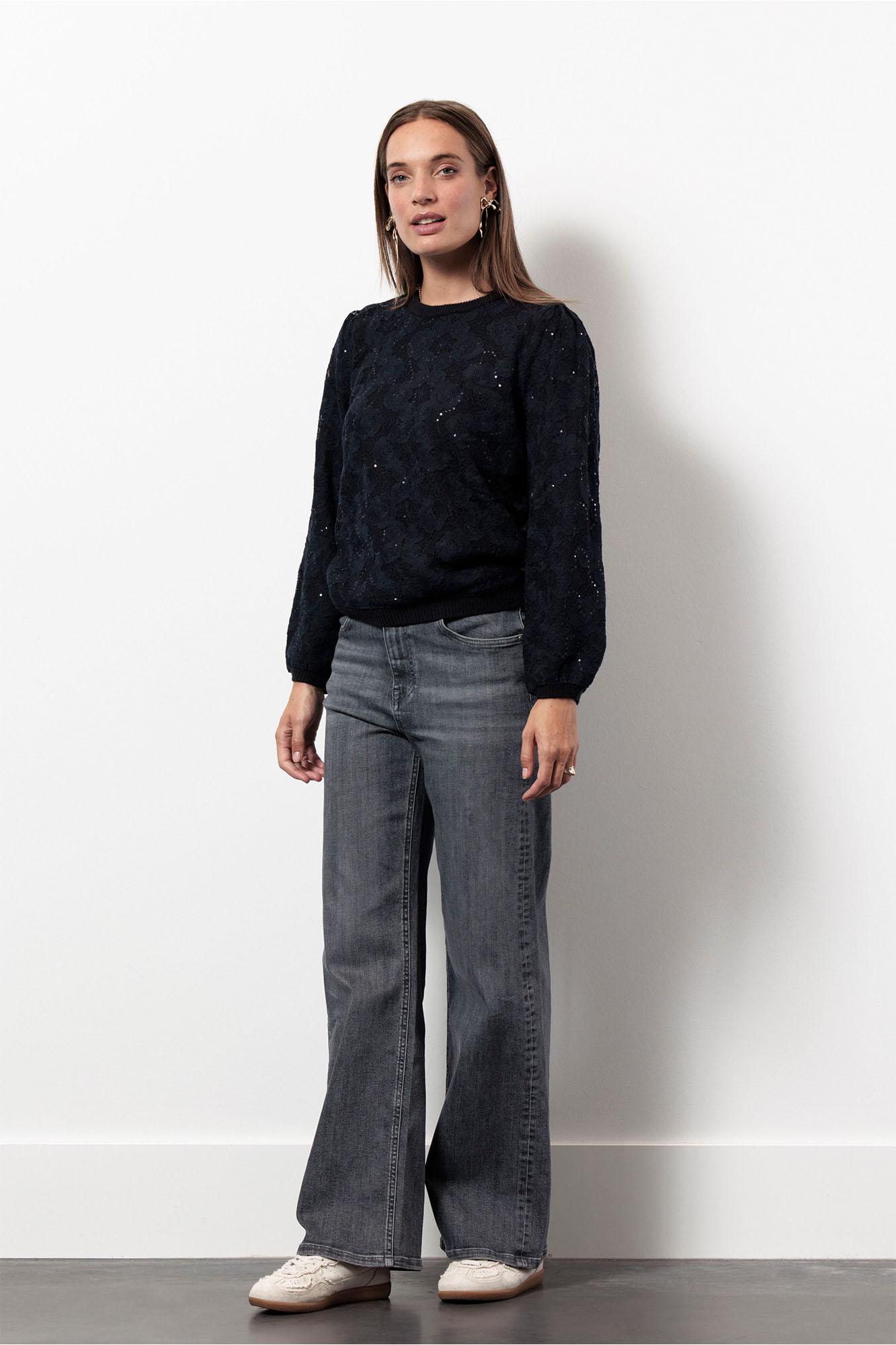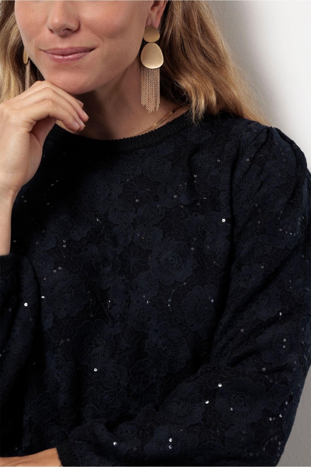 Maak kennis met de Lica lace pullover van STUDIO ANNELOES, een stijlvolle donkerblauwe trui die perfect is voor de Nederlandse winter. Deze trui is ideaal voor een wandeling langs de grachten of een gezellige avond thuis.
