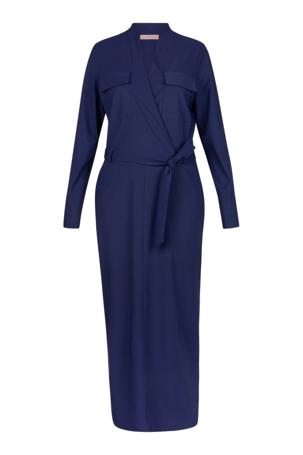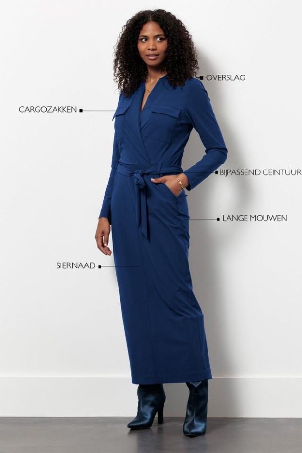 Maak kennis met de Jette cargo dress van STUDIO ANNELOES, een stijlvolle donkerblauwe jurk die perfect is voor de Nederlandse winter. Deze jurk combineert comfort met een modieuze uitstraling, ideaal voor een wandeling langs de grachten of een gezellige avond uit.