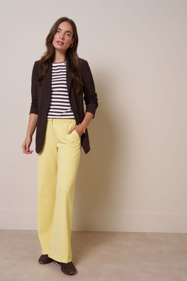 Verken de Luz twill trousers van STUDIO ANNELOES, een stijlvolle toevoeging aan je wintergarderobe. Deze broek in een zachte botergele kleur is perfect voor een gezellige winterdag in de stad.