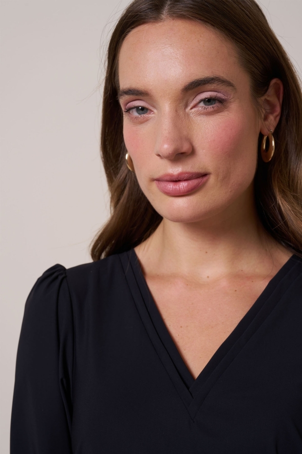 Maak kennis met de Lola top van STUDIO ANNELOES, een stijlvolle zwarte T-shirt met lange mouwen, perfect voor de Nederlandse winter. Deze top is ideaal voor een wandeling langs de grachten of een gezellige avond uit.