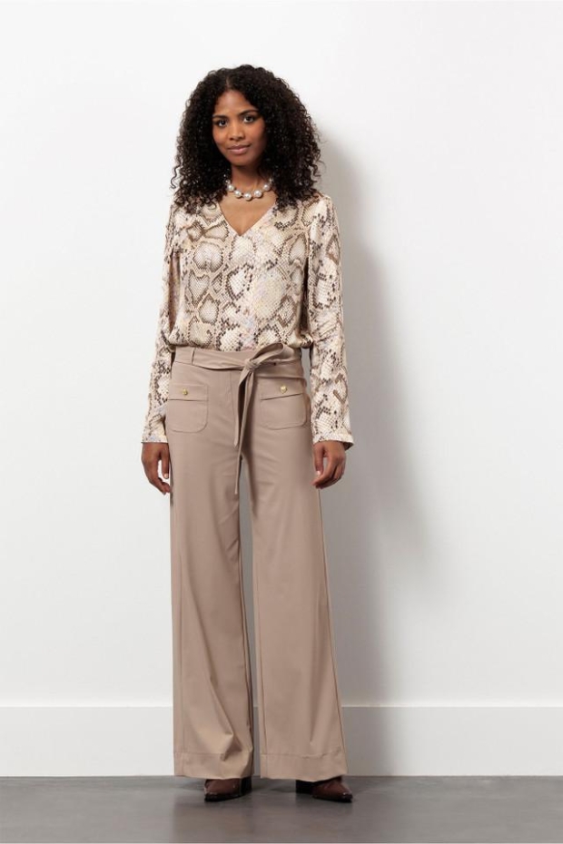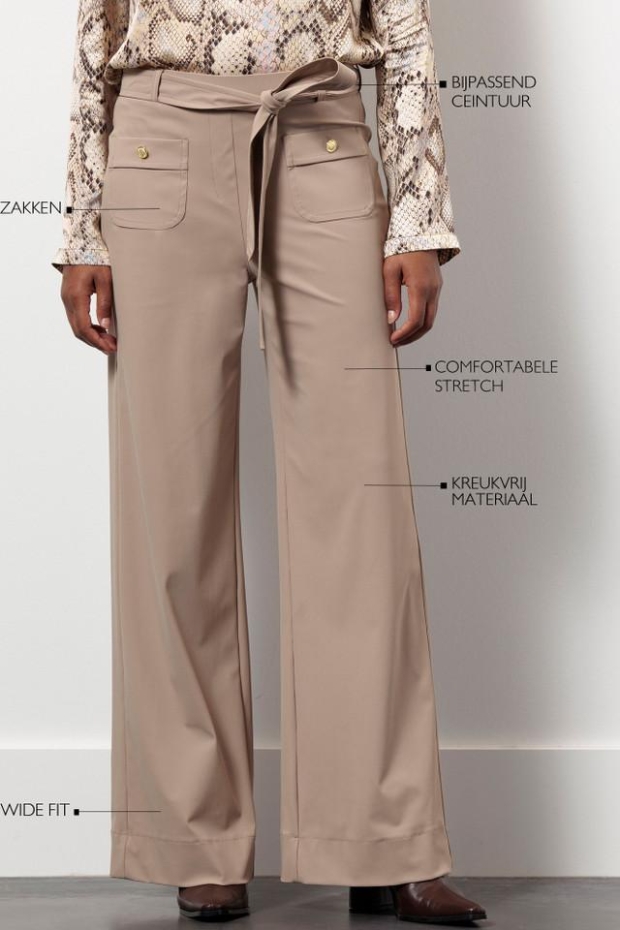 Maak kennis met de Penny bonded trousers van STUDIO ANNELOES, een stijlvolle damesbroek in een elegante zandkleur. Perfect voor de Nederlandse winter, deze broek combineert comfort met een modieuze uitstraling.