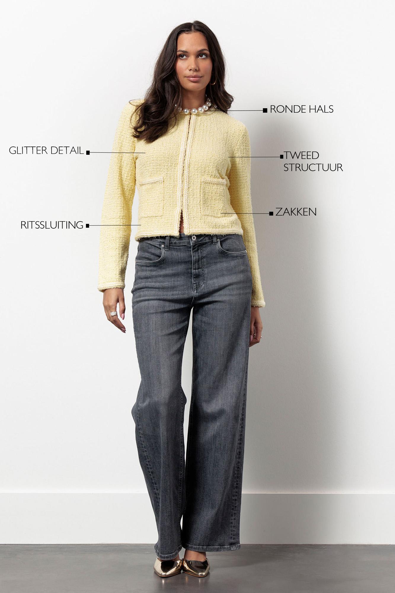 Verken de stijlvolle en warme uitstraling van de Xana tweed cardigan van STUDIO ANNELOES. Deze prachtige gele cardigan, in de kleur butter yellow, is de perfecte aanvulling voor je wintergarderobe. Ideaal voor een wandeling langs de grachten of een gezellige avond thuis.