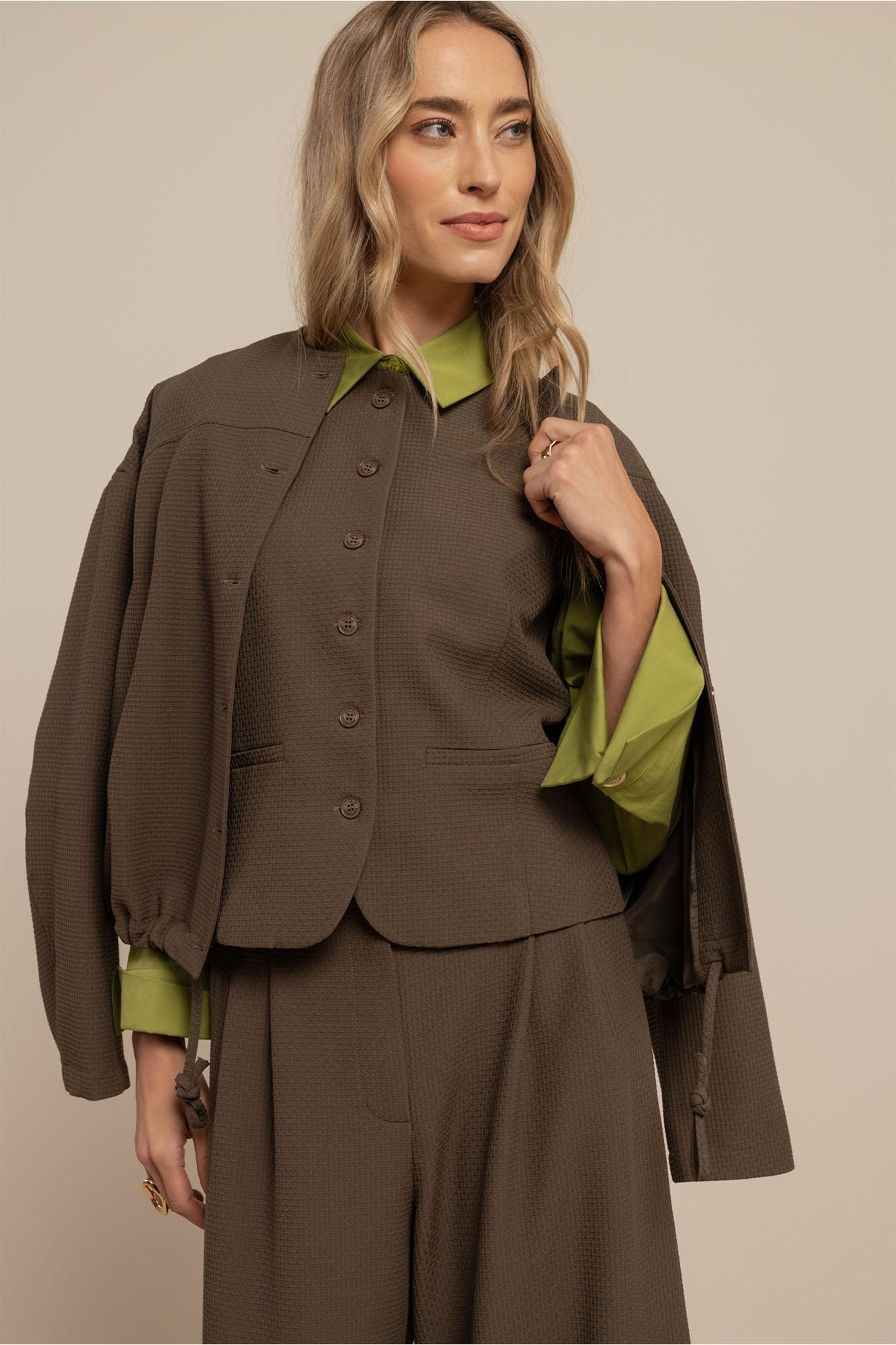 Maak kennis met de Selma waffle jacket van STUDIO ANNELOES, een stijlvolle toevoeging aan je zomercollectie. Deze jas in de kleur 'army' is perfect voor de modebewuste vrouw die houdt van een casual en toch verfijnde look.