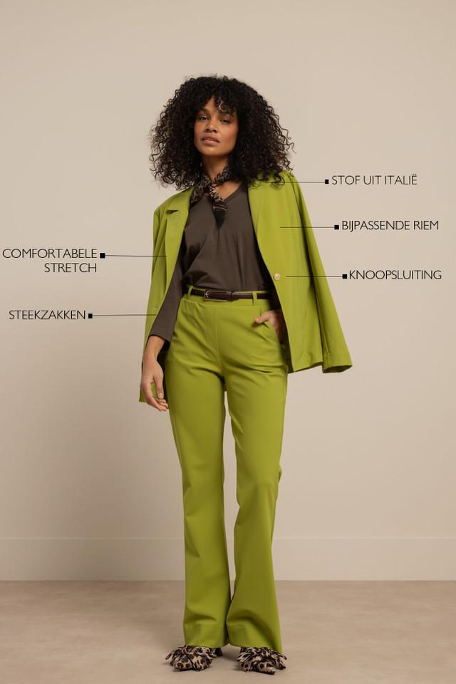 Maak kennis met de Annet bonded blazer van STUDIO ANNELOES, een stijlvolle toevoeging aan je zomergarderobe. Deze blazer in een opvallende lime kleur is perfect voor modebewuste dames die houden van een frisse en moderne uitstraling.