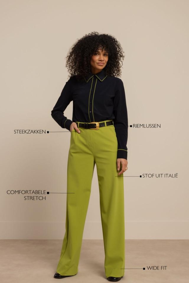 Maak kennis met de Lexie bonded trousers van STUDIO ANNELOES, een stijlvolle damesbroek in een opvallende lime kleur. Perfect voor de Nederlandse zomers, deze broek voegt een frisse touch toe aan je garderobe.