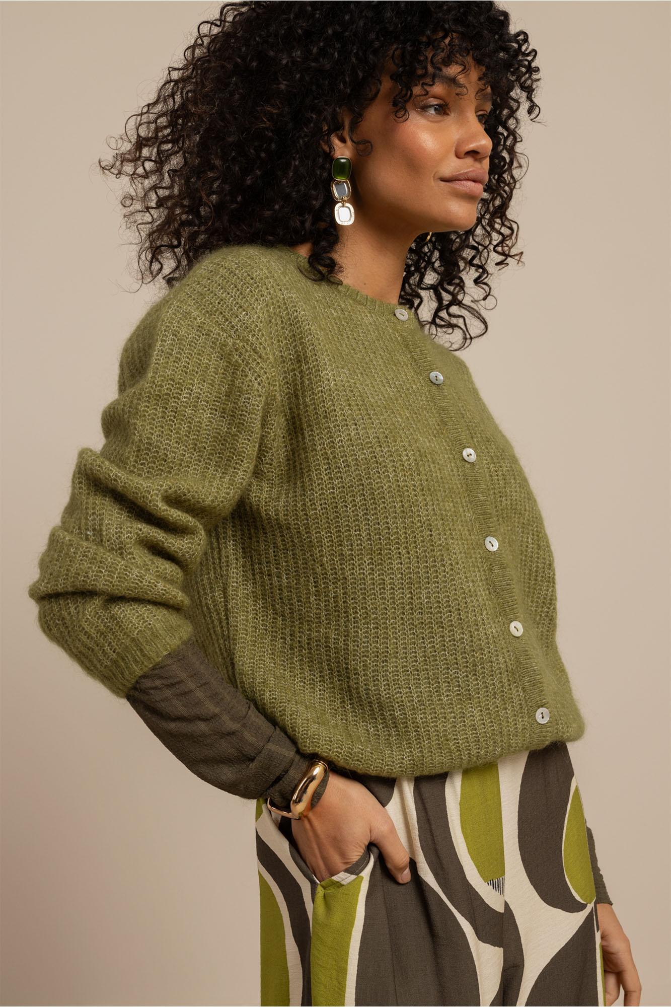 Maak kennis met de Bibi spring cardigan van STUDIO ANNELOES in een frisse lime kleur. Perfect voor de Nederlandse zomerdagen, dit damesvest voegt een vleugje kleur toe aan je garderobe.