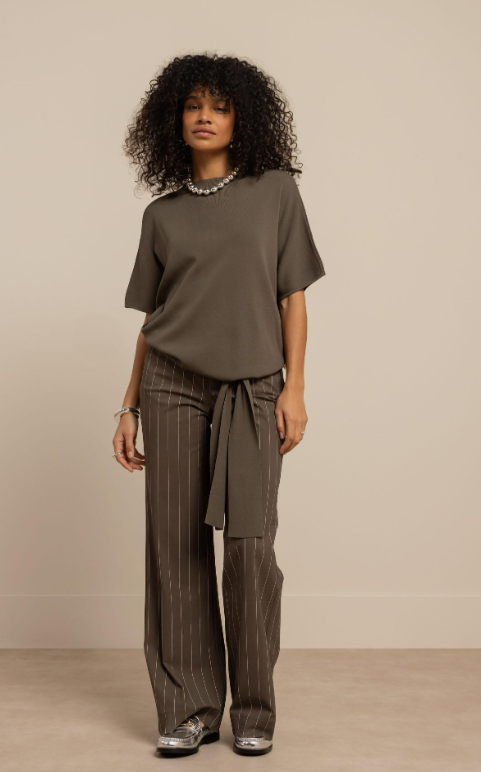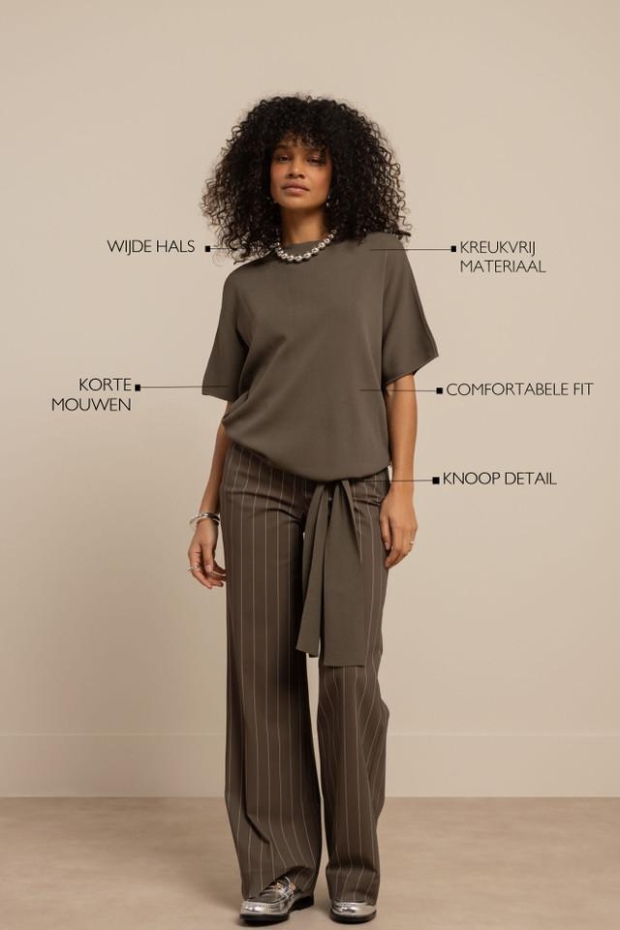 Maak kennis met de Jottie knot pullover van STUDIO ANNELOES, een stijlvolle trui met korte mouwen in een trendy army kleur. Perfect voor de Nederlandse zomerdagen, deze pullover voegt een vleugje elegantie toe aan je garderobe.