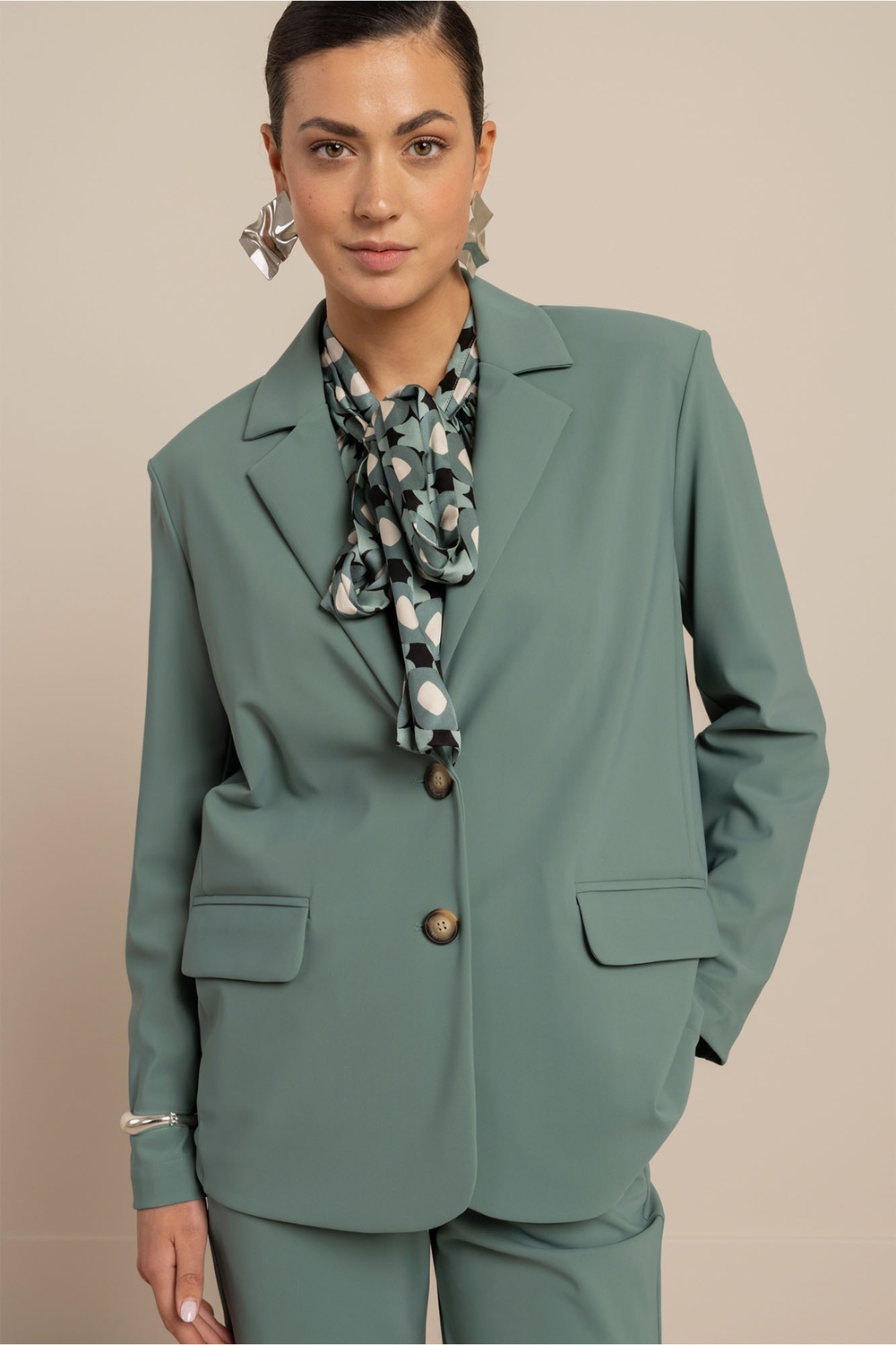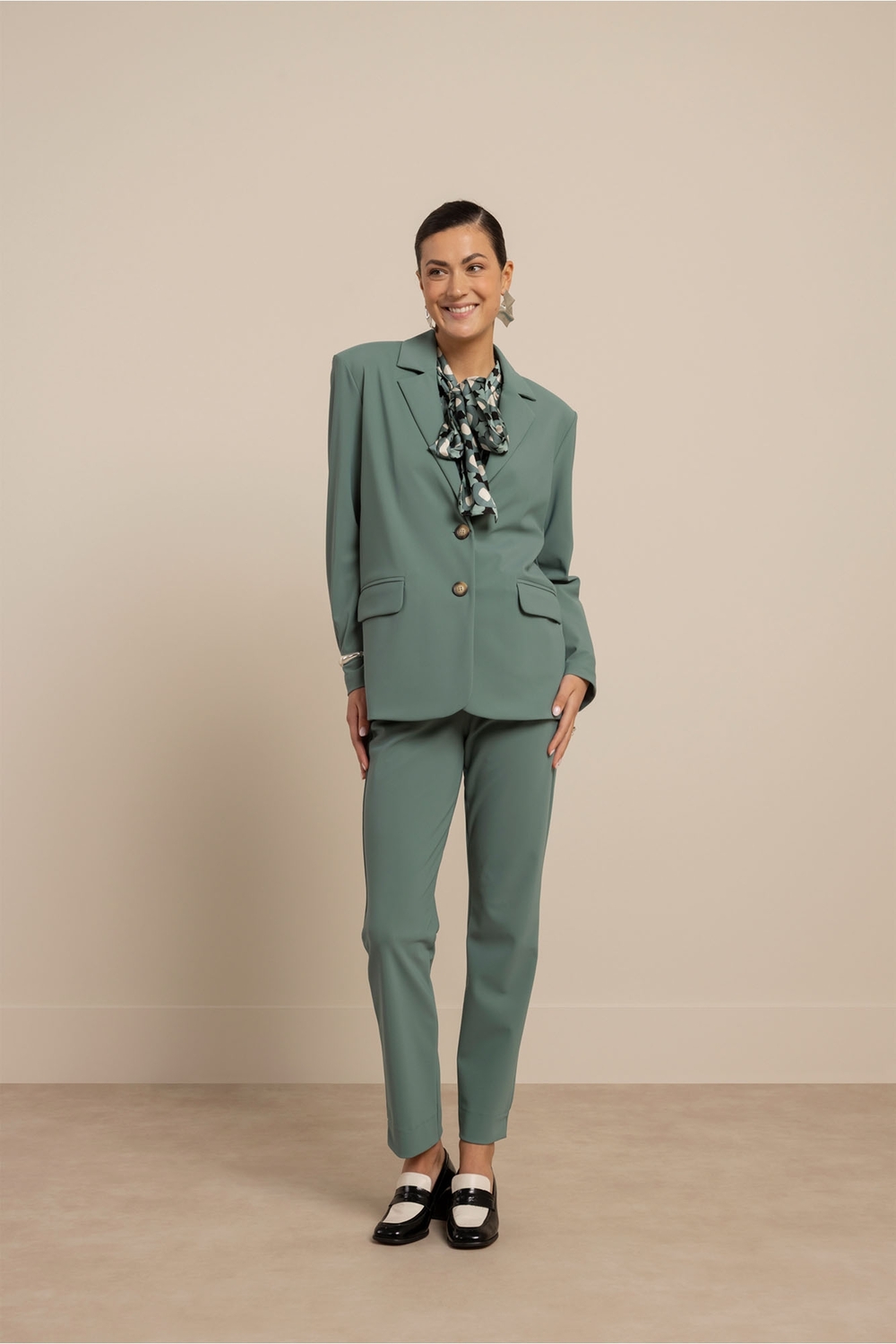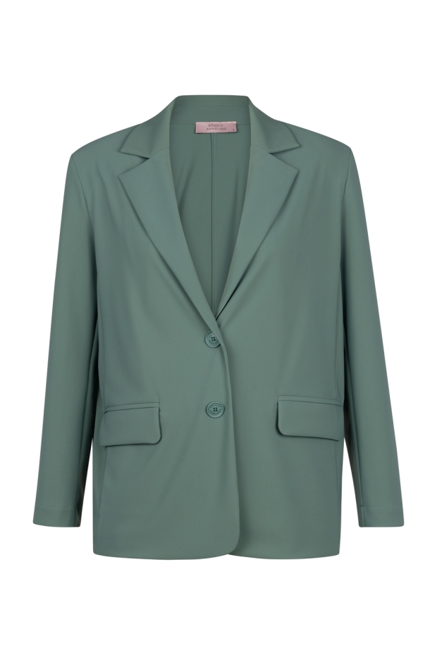 Verken de stijlvolle Portia bonded blazer van STUDIO ANNELOES in een prachtige donkere saliegroene tint. Perfect voor de modebewuste vrouw die haar zomeroutfits wil verrijken met een vleugje elegantie.