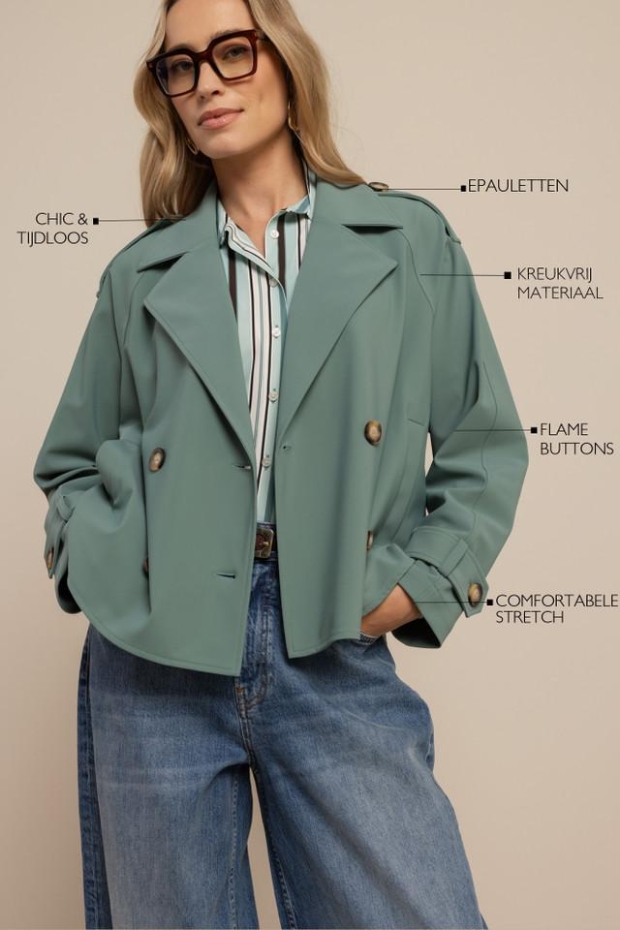 Ontdek de Cato bonded trenchcoat van STUDIO ANNELOES, een stijlvolle zomerjas voor dames in een prachtige donkere saliegroene tint. Perfect voor de Nederlandse zomers, deze trenchcoat combineert elegantie met comfort.