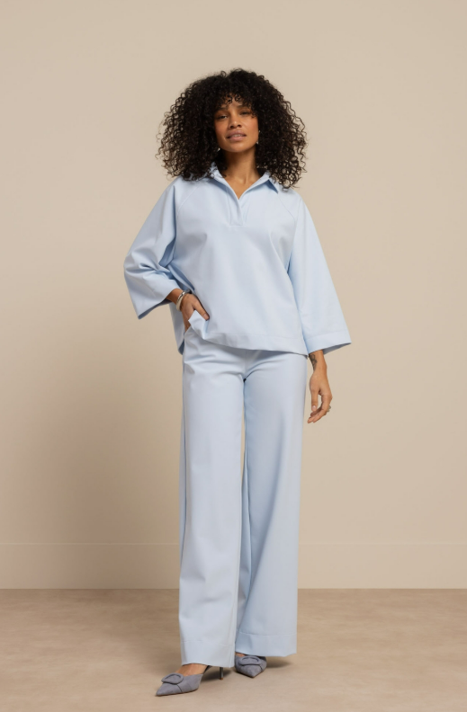 Verken de stijlvolle Lexie bonded trousers van STUDIO ANNELOES in een frisse lichtblauwe tint. Deze damesbroek is perfect voor de Nederlandse zomers en voegt een vleugje elegantie toe aan je garderobe.
