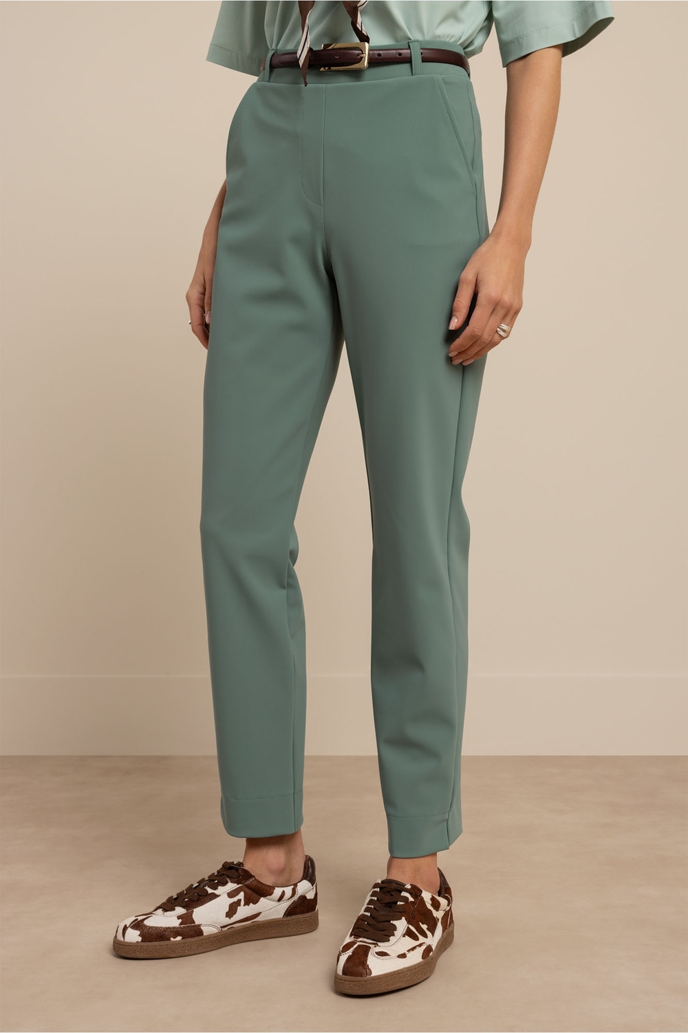 Ontdek de Anne bonded trousers van STUDIO ANNELOES, een stijlvolle damesbroek in een prachtige donkere saliegroene tint. Perfect voor de Nederlandse zomerdagen, deze broek combineert moeiteloos comfort met een trendy uitstraling.