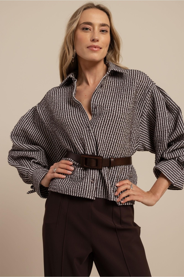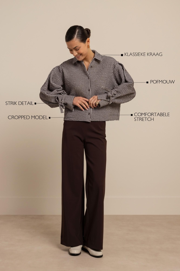 Maak kennis met de Ivara structure blouse van STUDIO ANNELOES, een stijlvolle toevoeging aan je zomergarderobe. Deze donkerbruine blouse, met de verfijnde kleur 'espresso/ecru', is perfect voor de modebewuste vrouw die houdt van een elegante en tijdloze look.
