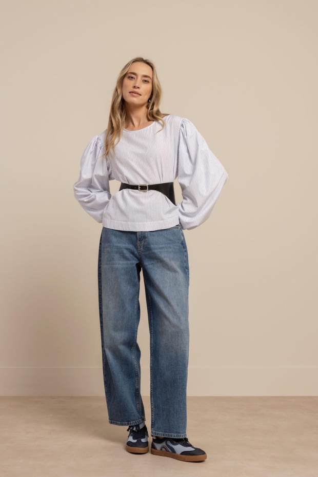 Maak kennis met de Florence stripe top van STUDIO ANNELOES, een stijlvolle toevoeging aan je zomergarderobe. Deze lichtblauwe top met korte mouwen is perfect voor een frisse en modieuze look tijdens de warme maanden.